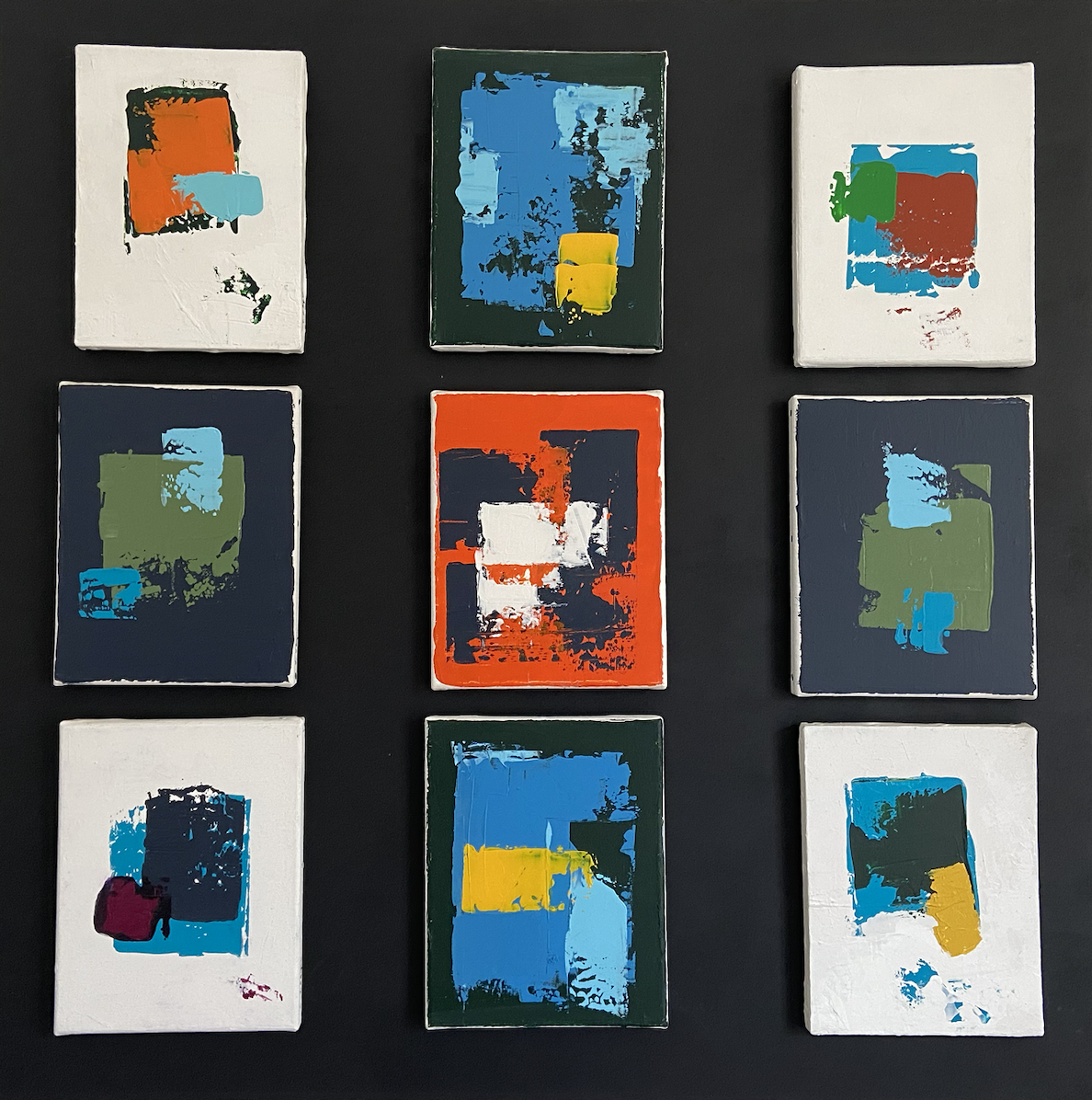 VO83 - quadriptyque acrylique et collage - 24cm x 18cm
